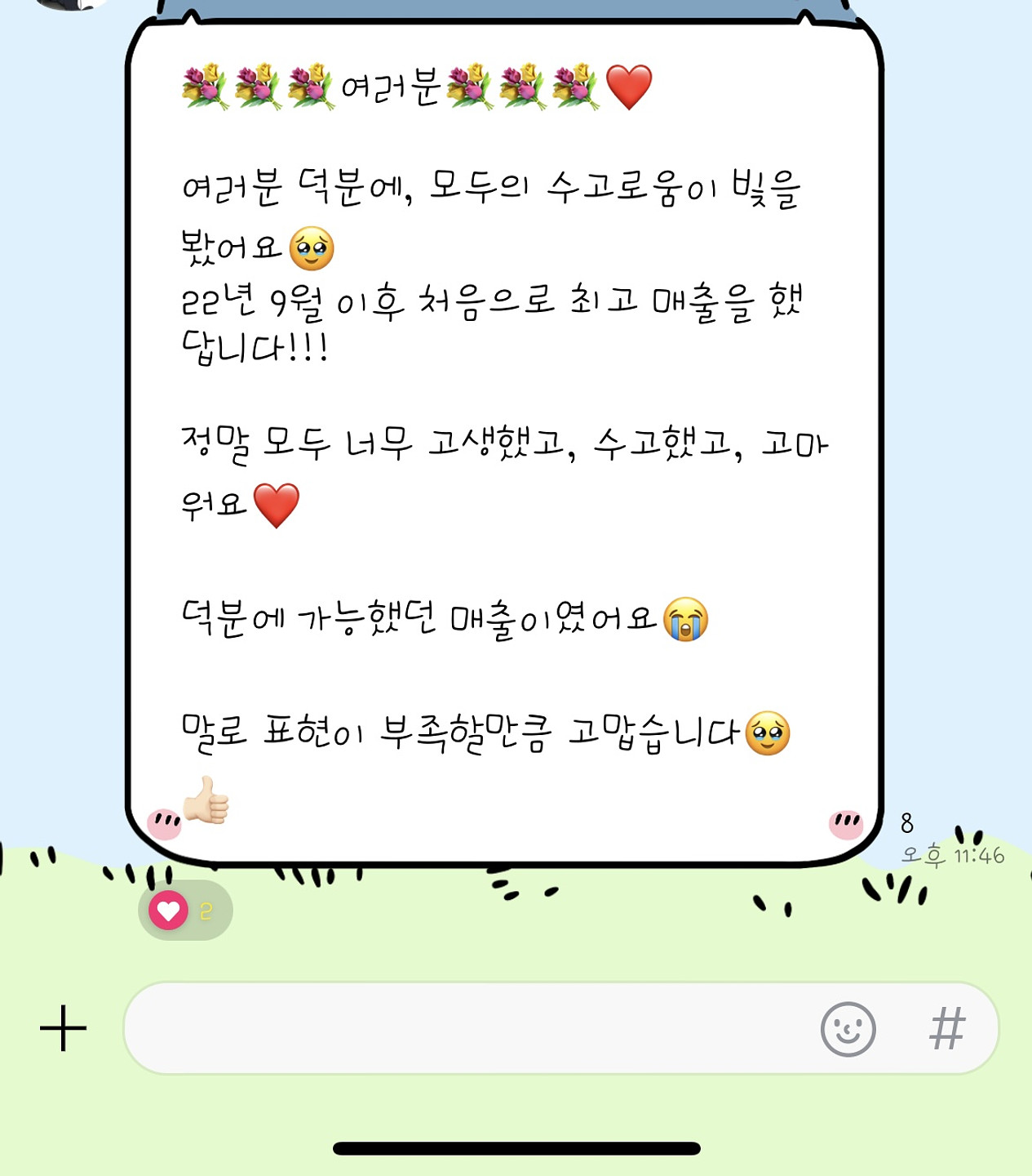 이 폰트 뭔지 아시는 분 계실까요? 카톡 제공 폰트였던 것 같은데 갑자기 폰트가 풀리고 뭐였는지 찾을 수가 없네요 ㅠㅠ