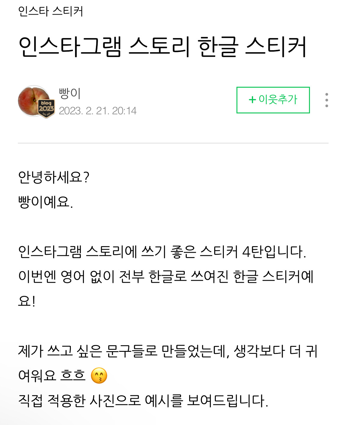 빵이님 인스타스토리 스티커