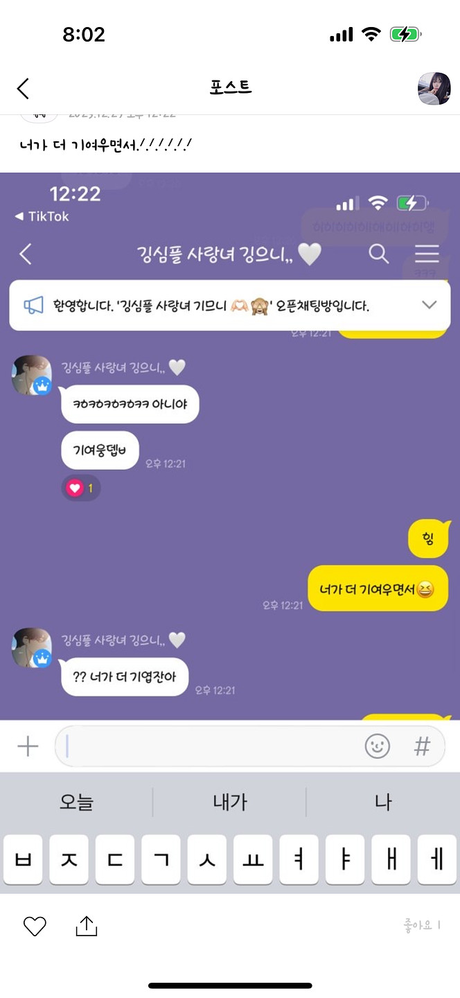 카톡 테마 변경하다가 실수로 폰트를 건드렸는데 지금 카톡엔 없는 폰트같아요.... 폰트 변경 안한지는 최소 2년전입니다.. 제발 이 폰트 찾아주세요 ㅠㅠ