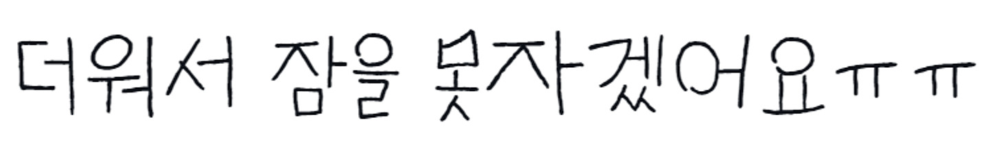 더워서 잠을 못자겠어요 ㅠㅠ 폰트 알수있을까요? 리쥬라이크에 나온 폰트에용